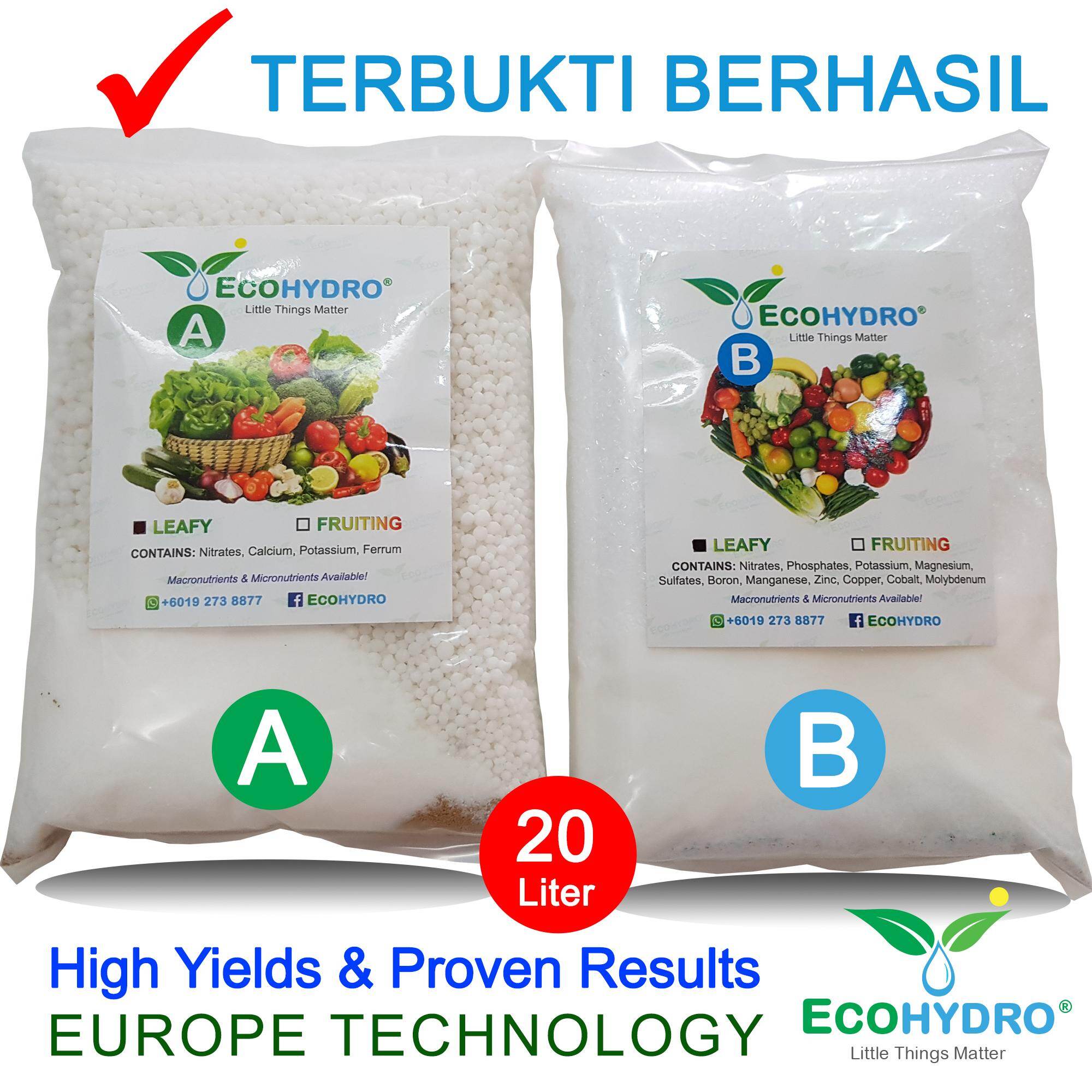 Original 20 Liters 2kg Baja Ab Sayur Daun Dan Buah Fertigasi Hydroponic Fertilizer Ab Nutrients A B Solution Diy Dry Crystal Ecohydro Baja Npk Hidroponik 肥料 营养液 Lazada